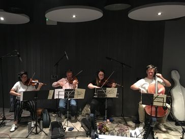 I am very lucky to know so many talented performers, and we had a blast recording these tracks at the wonderful Crouch End Studios. Rhys Taylor was a busy man on various saxophones, recording and overdubbing all day long - excellent job, mate! The string quartet - led by the incomparably excellent Nia Bevan - also featured Simon Howes on